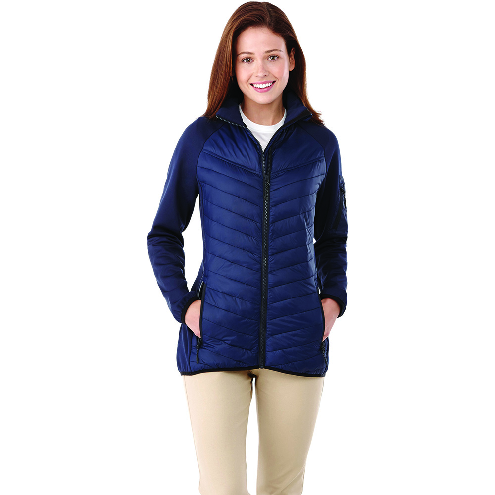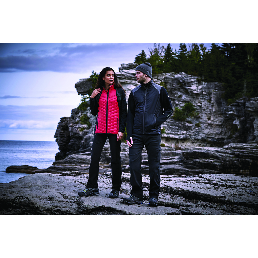 With its distinctive quilted body, brushed back knit sleeves and body panels, the Banff hybrid insulated jacket is an unique combination of style and comfort. Offering insulated warmth and a water repellent finish for work or play! It's also got brushed polyester inner zip flap, chin guard and pocket lining for the added touch of cozy. Available in bold colour-block or monochrome, the Banff has a distinctive retail look that will set any brand apart.