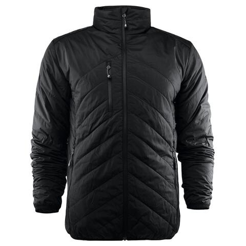 Men’s quilted lightweight jacket. Fully lined with hidden hood inside the collar (invisible zip). Reversed coil zip at centre front, and pockets. Elastic binding at bottom hem and sleeves. Jacket can be tucked into the front pocket which transforms into its own storage pouch. Invisible zip on the inside for ease of decoration.