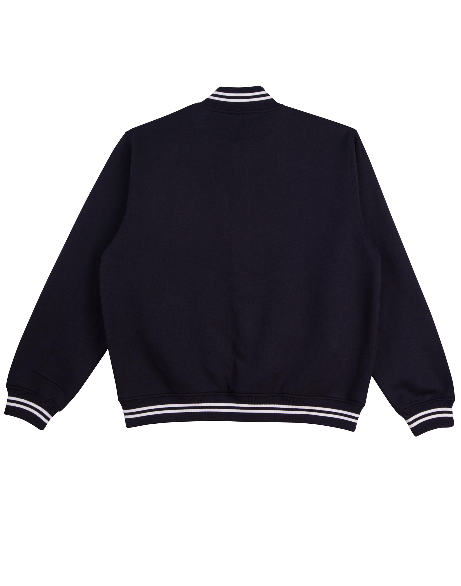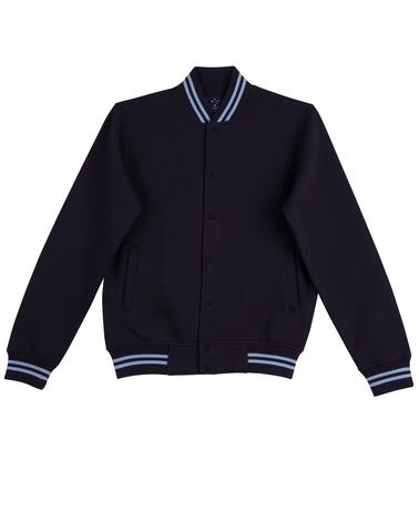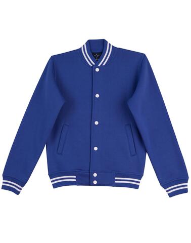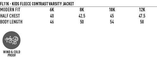 Product DetailsProduct Details FeaturesKids' Fleece Varsity JacketFabric: Poly/Cotton Fleece, 340gsm--65% Polyester, 35% Cotton Fleece.Description:Heavy ribbed collar, cuffs & waist band with contrast strips. Two front welt pockets. Press studs front closure. Available coloursBlack/White|Bottle/Gold|Bottle/White|Navy/Skyblue|Navy/White|Red/White|Royal/Gold|Royal/White Sizes06K|08K|10K|12K Available decorationEmbroidery|Screen Printing Size chartSize chart Size chart