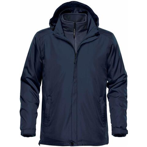 Perceptive and reflective. This 3-in-1 system jacket is as changeable as the weather. With a functional design that is as perceptive as you are, you stand prepared as the hills change to red, gold and orange. Three jackets in one allow you to customize as you see fit. Choose to wear the ultra-warm zip-out fleece liner jacket on its own, or simply don the rain shell in light conditions. The full-length storm flap provides extra coverage, and the roll-away hood brings added versatility. Ever the protector; the reflective trim provides increased visibility in low light.