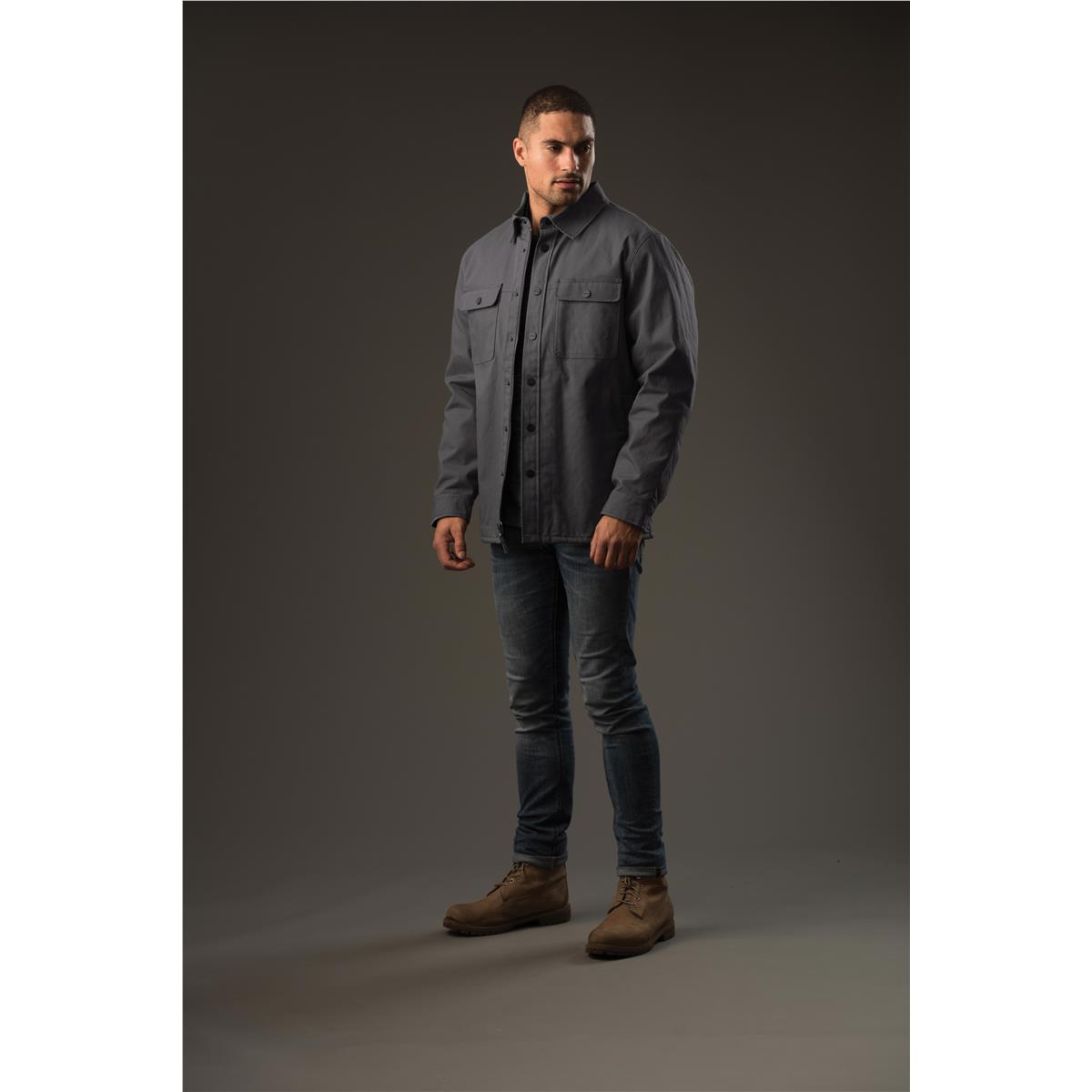 Rugged and highly durable, with a water-repellent finish, sherpa fleece lining and light thermal fill for added warmth. This workwear-ready jacket features double chest pockets, self fabric collar, a contemporary fashion-forward design and embroidery access for decoration.