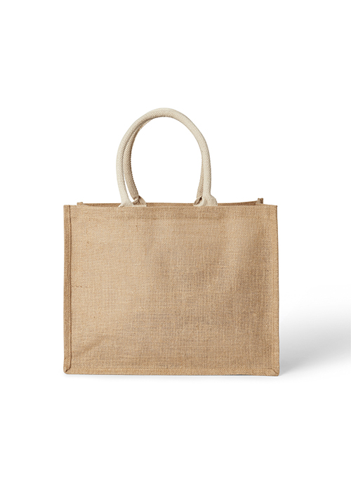 Laminated Jute Supermarket Bag With Coloured Handles And Gussets