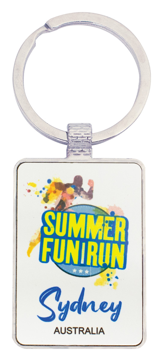 Range of affordable metal keychains with sublimation printable white to achieve your colour logo or design.