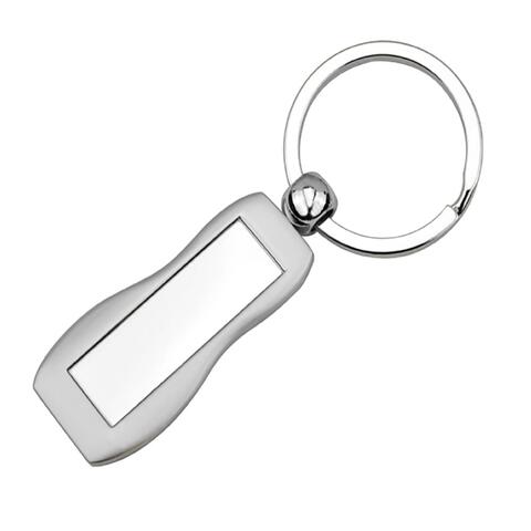 A hour glass shaped key ring made of zinc alloy metal shiny chromed plate provides a large decoration area it can be laser engraved and printed.