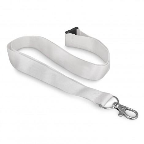 20mm wide polyester lanyard which can be branded with vibrant soft touch silicone ink. The lanyard has a metal clip and a safety clip. Other attachments are available on request. A production lead time of 25 working days applies to this product by air freight and larger orders can be sea freighted on request to reduce the freight cost.