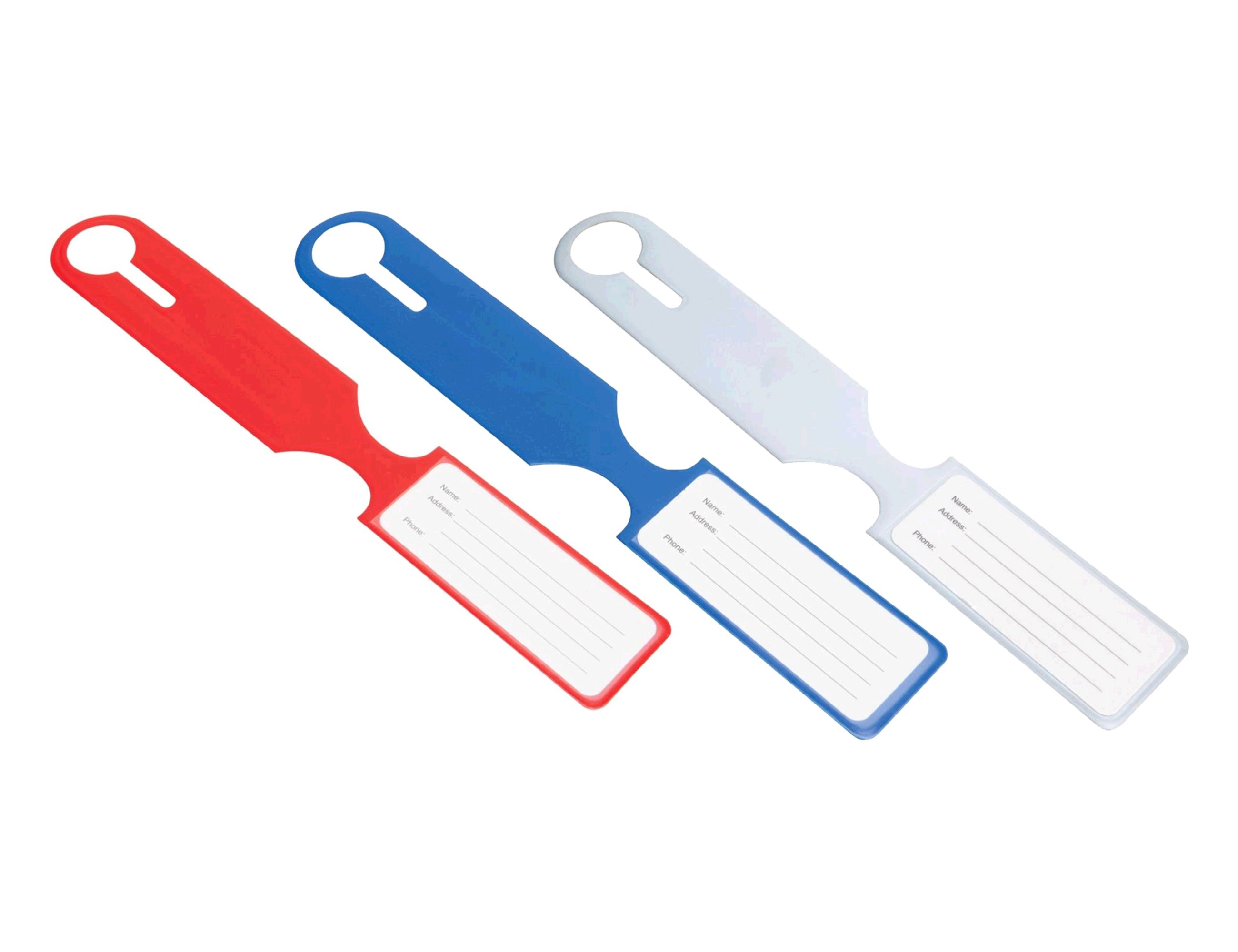 These brightly coloured soft feel luggage tags are ideal for travel, conferences and any time that bag identification is required. Presented in a frosted sleeve. Luggage tag size is 25cm long x 3.7cm wide. Available in red, blue or white.