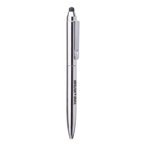 The Jot Stylus Twist Metal Ballpen features a sleek stainless steel barrel with ABS components. Designed with a twist-action mechanism and built-in stylus tip, it’s a modern option for writing and touchscreen use in one clean design.