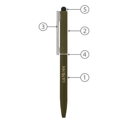 Made from brass, stainless steel and ABS, the Sari is a twist-action ballpen with a built-in stylus for seamless use across both notebooks and touchscreens. Clean lines, smooth writing, and black ink included – ready for branding that means business.