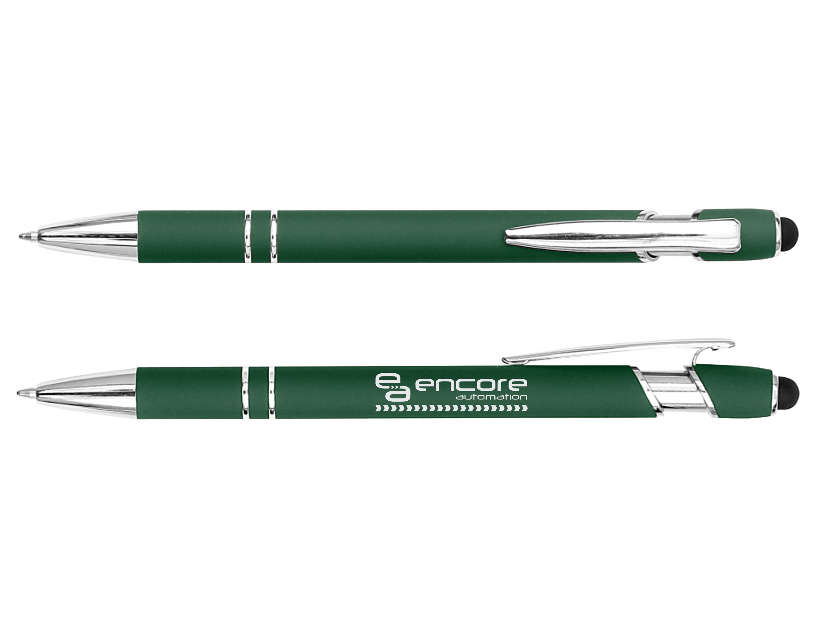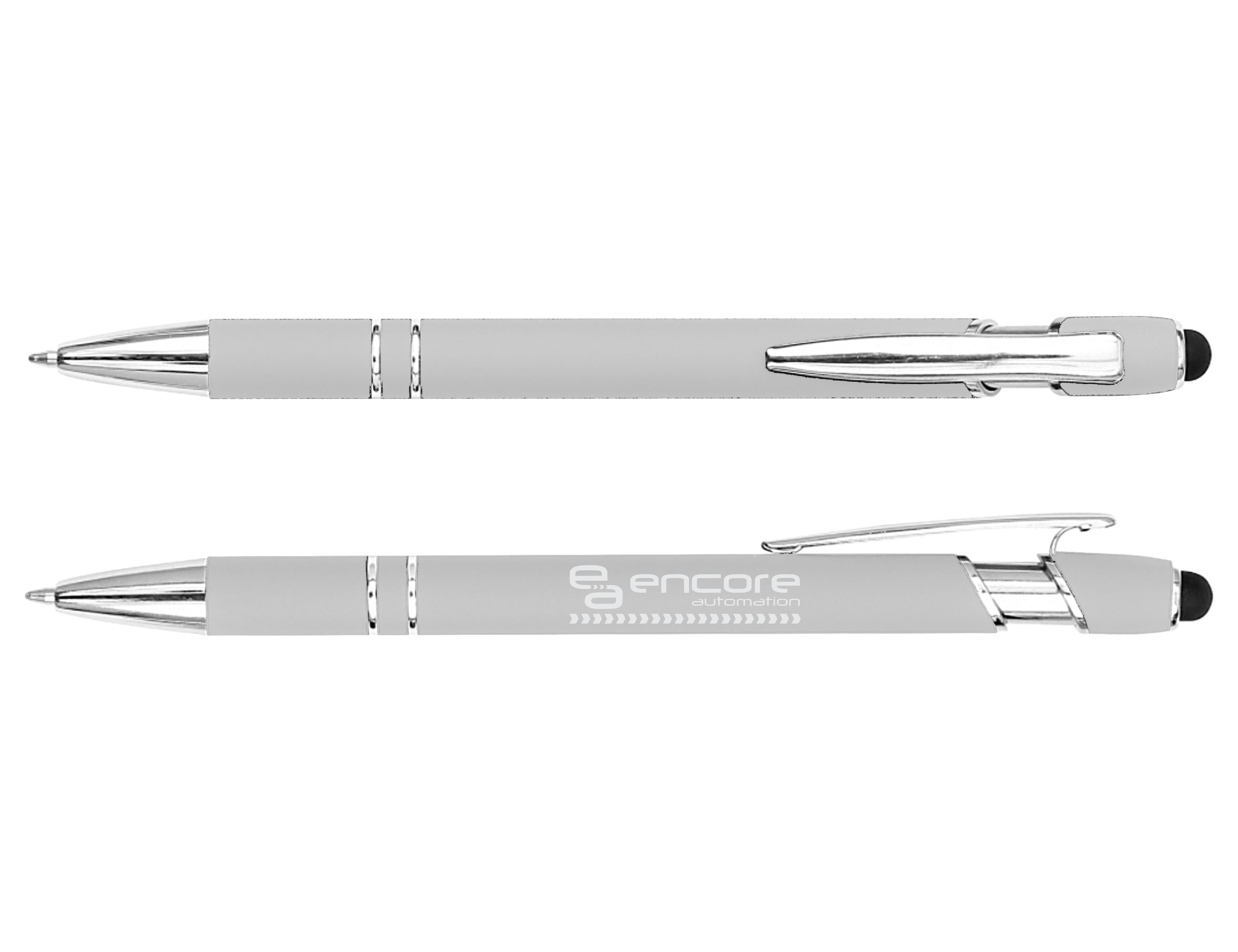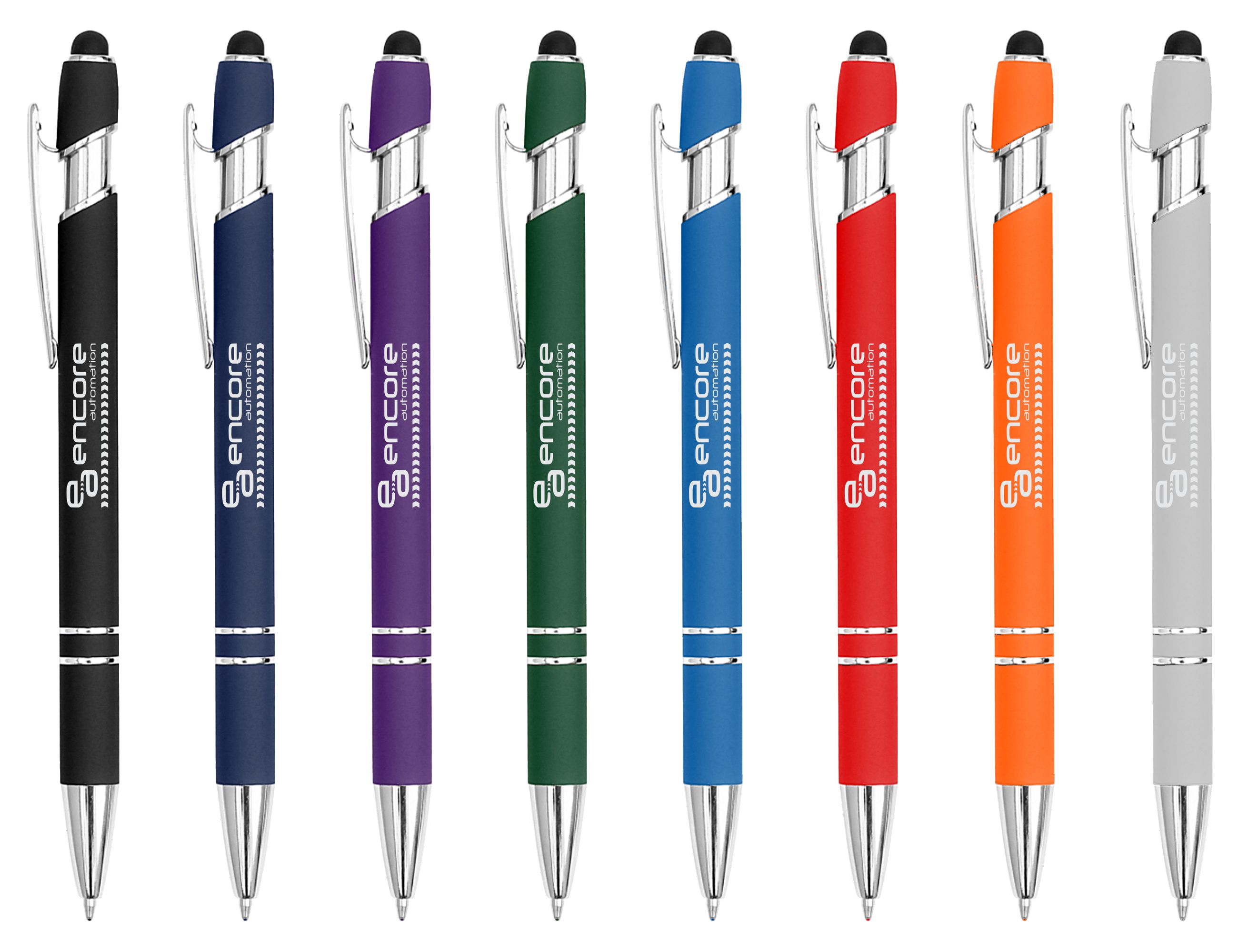The Colombo Stylus Pen combines modern design with everyday functionality. Crafted from lightweight aluminium and finished with a premium rubber-feel barrel, it offers a smooth writing experience with black ink and the added convenience of a touchscreen stylus. Ideal for the office, events, or on the move, it’s a stylish and practical promotional item available in 8 stock colours – ready to highlight your brand.