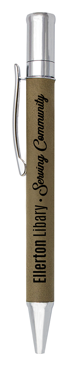 The diverse range of leatherette products offer different options for your engravable gift item. Leatherette allows for an affordable medium and durable engraving results. Single pen in rawhide colour and chrome trim finish.
