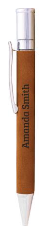 The diverse range of leatherette products offer different options for your engravable gift item. Leatherette allows for an affordable medium and durable engraving results. Single pen in rawhide colour and chrome trim finish.