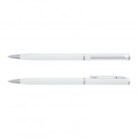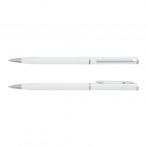 Twist-action aluminium ballpoint pen with a narrow, elegant silhouette. It has 600m of blue Dokumental ink and is a popular choice for the hotel and hospitality industry.