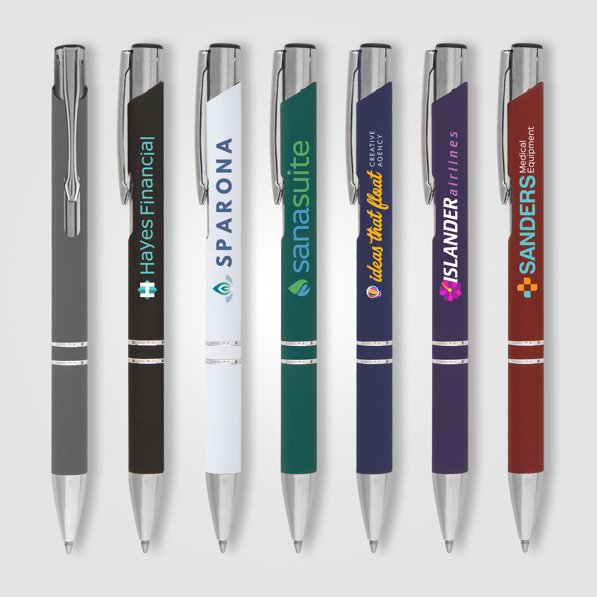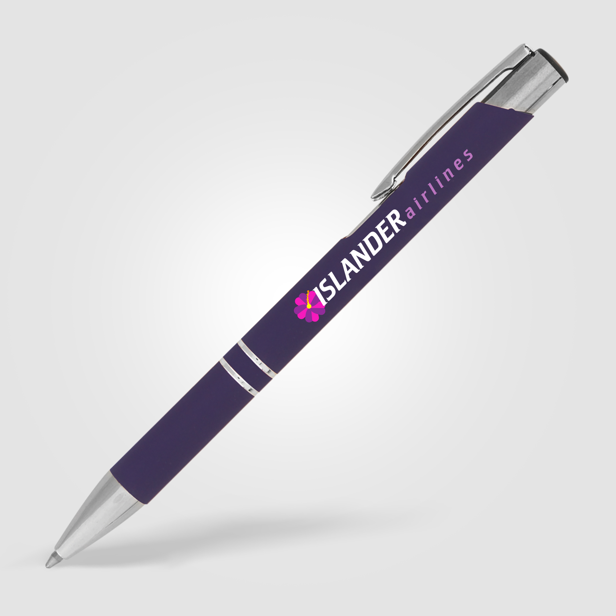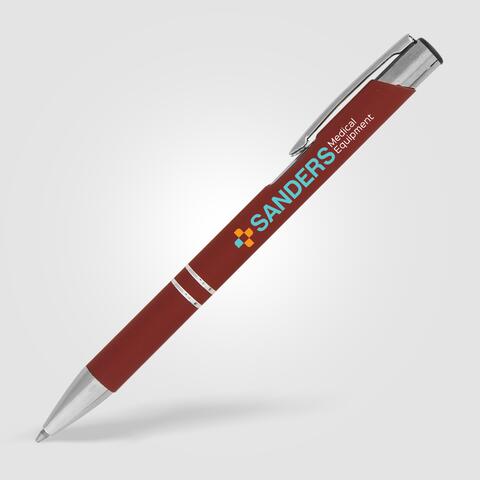 The Crosby Softy Metal Pen is a best-selling favourite that combines elegance with comfort. Its aluminium barrel features a soft-touch rubberized finish for a luxurious feel and comfortable grip. The sleek design is enhanced with two chrome rings and a chrome metal clip for added sophistication. Available in seven vibrant colours, this pen perfectly blends style and functionality.
