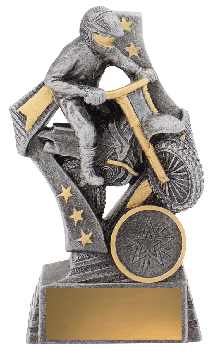 Dynamic Motocross trophies well suited to range of events. These 'Flag' bike trophies feature a stylish star based design with a rider in action.