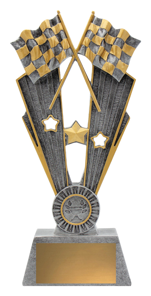 Classic trophy series featuring the iconic crossed motorsport flags. A versatile theme suited for various events, the motorsport trophies are available in 4 sizes. Space for 25mm insert if required.