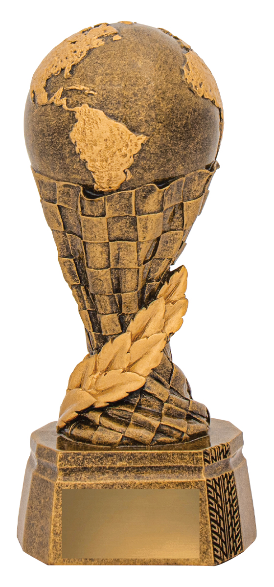 Available in 3 great trophies, the raised globe and motorsport inspired design represents a unique trophy option for your motorsport event or presentation. Trophies are substantial in size and completed in classic trophy gold.