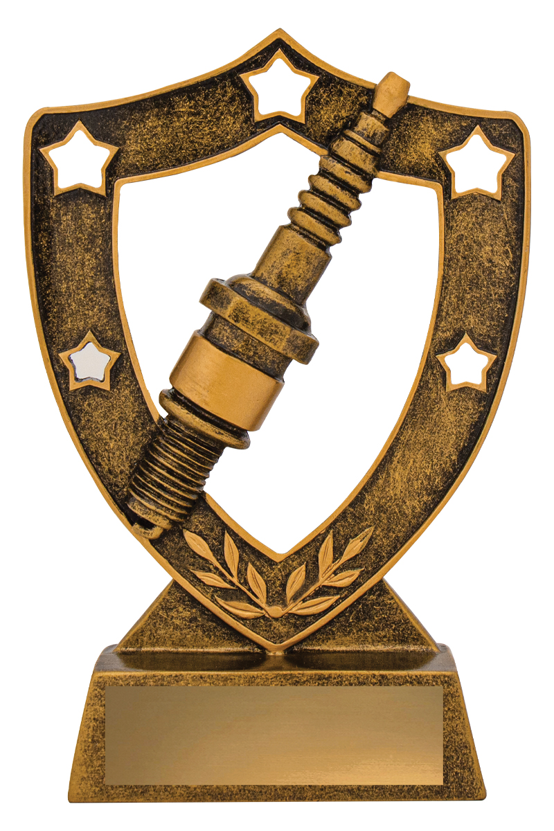 Classic wreath and shield inspired design, the Motorsport Sparkplug Shield is an affordable and popular award choice. A versatile theme award that is available in 3 convenient sizes.