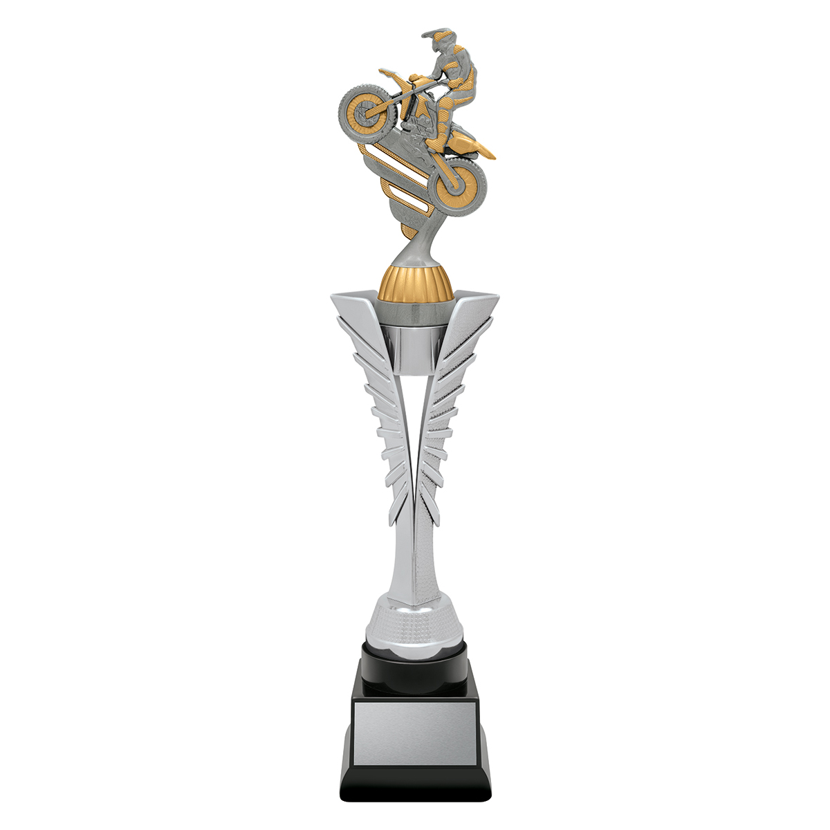 Silver Spear trophies showcase a brilliant top on a distinctive "spear" riser - the top finished in antique silver. Available in 3 sizes.