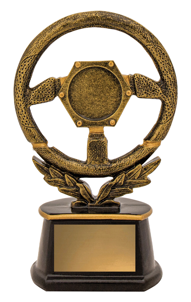 Motorsport trophy theme features elegant design that celebrates the iconic steering wheel. With space for 25mm logo if required, the trophies are available in 3 convenient sizes.