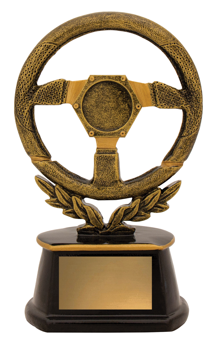 Motorsport trophy theme features elegant design that celebrates the iconic steering wheel. With space for 25mm logo if required, the trophies are available in 3 convenient sizes.