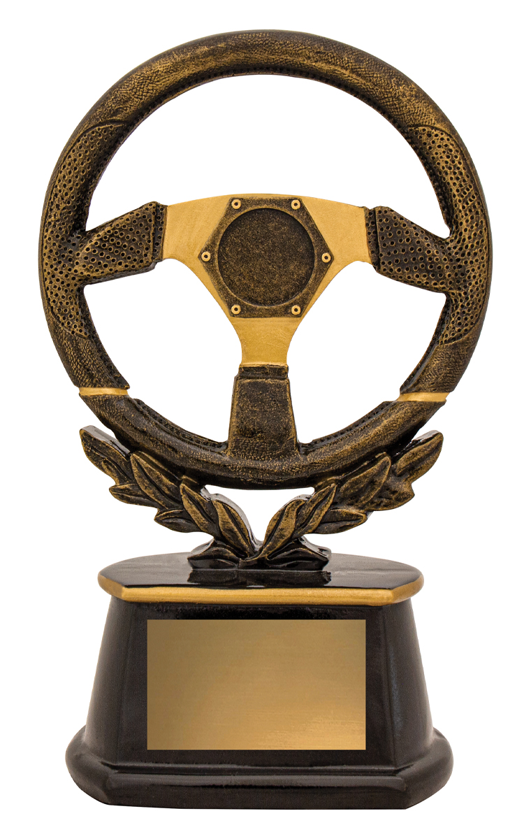 Motorsport trophy theme features elegant design that celebrates the iconic steering wheel. With space for 25mm logo if required, the trophies are available in 3 convenient sizes.