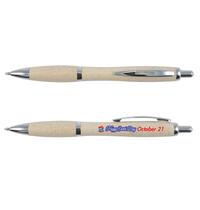 Discover the eco-conscious Push Button Ballpoint Pen, crafted from a 50/50 blend of wheat fibre and BPA-free polypropylene. This pen combines sustainability with performance, featuring a smooth writing experience and a writing distance of 2.1 kilometres. The sleek design includes silver accents and a convenient push-button mechanism for ease of use. Ideal for those who appreciate both environmental responsibility and reliable functionality.