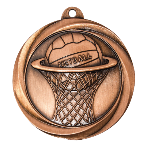 Economic series of medals to suit your budget requirements – the 3D Medal series presents excellently designed medals with high relief and detail to represent your sport or activity. Netball theme design features stylised ball and net scene – space for your engraving on the back of every medal. Plenty of medal box and ribbon options to complete your selection.