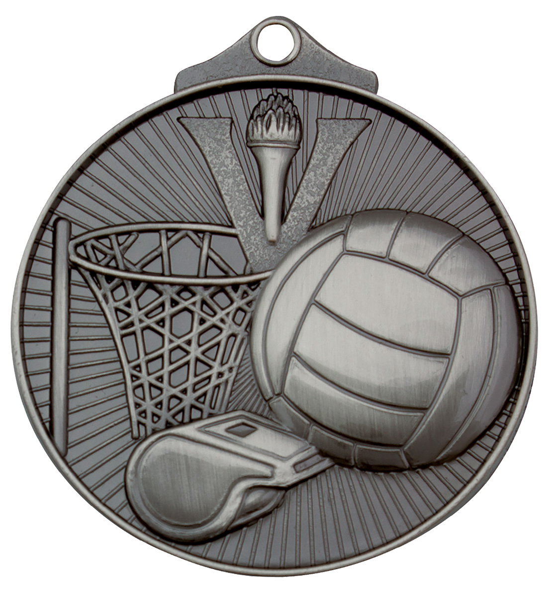 Antique gold, silver and bronze medals for your Netball team or club. A classic design, the Sunraysia Medals feature iconic netball elements of the ball, whistle and goal. Medals feature an extra thick edge and a rectangle panel on the back of the medal for your engraving.