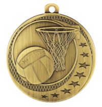 Bright gold, silver and bronze medals for Netball. A popular medal series, the Star Series features a unique hollow multi-star design and extra thick edge. There is a rectangle panel on the back of each medal for your engraving. Ribbons available in all colours and plenty of medal boxes to suit.