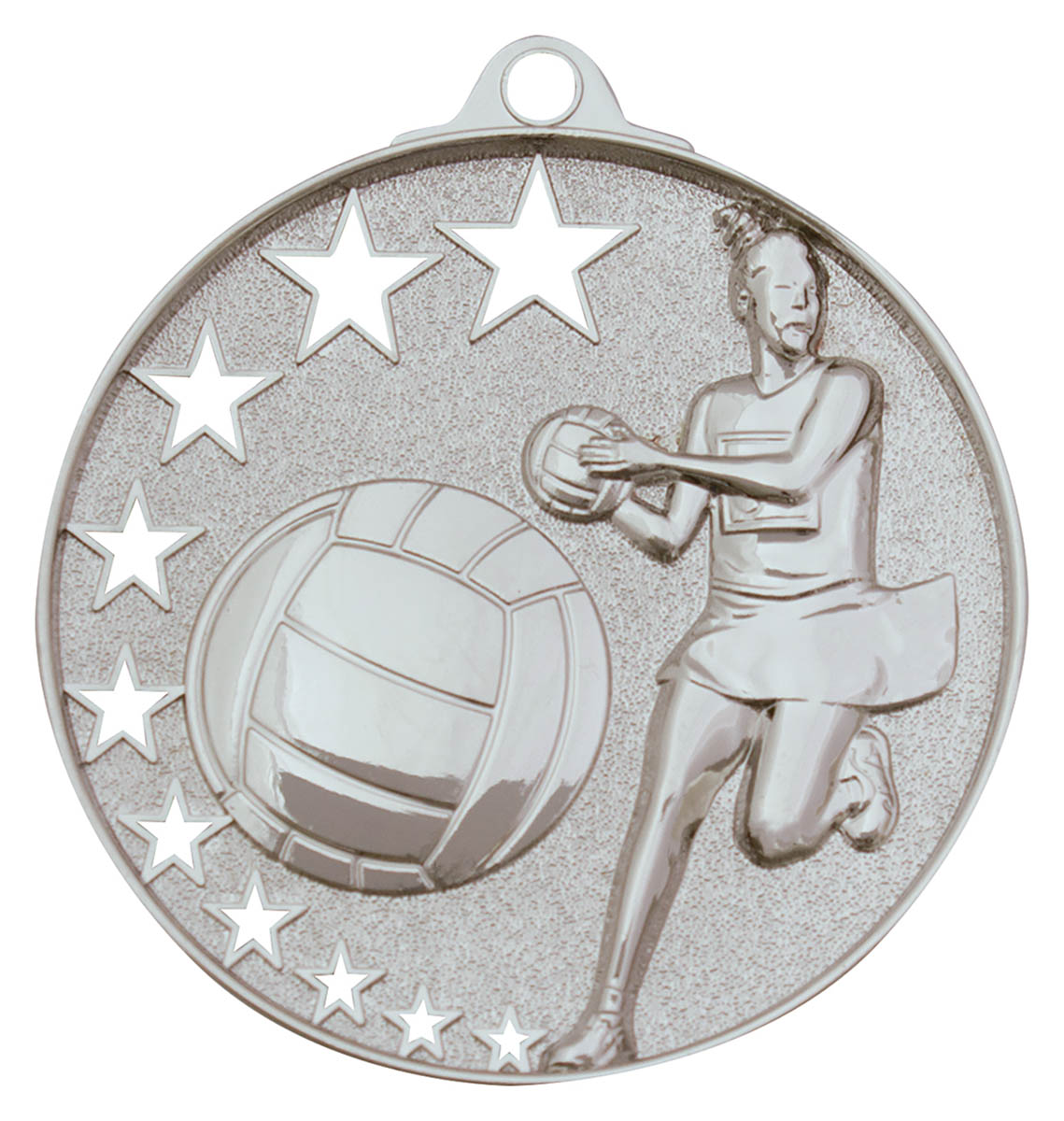 Bright gold, silver and bronze medals for Netball. A popular medal series, the Star Series features a unique hollow multi-star design and extra thick edge. There is a rectangle panel on the back of each medal for your engraving. Ribbons available in all colours and plenty of medal boxes to suit.