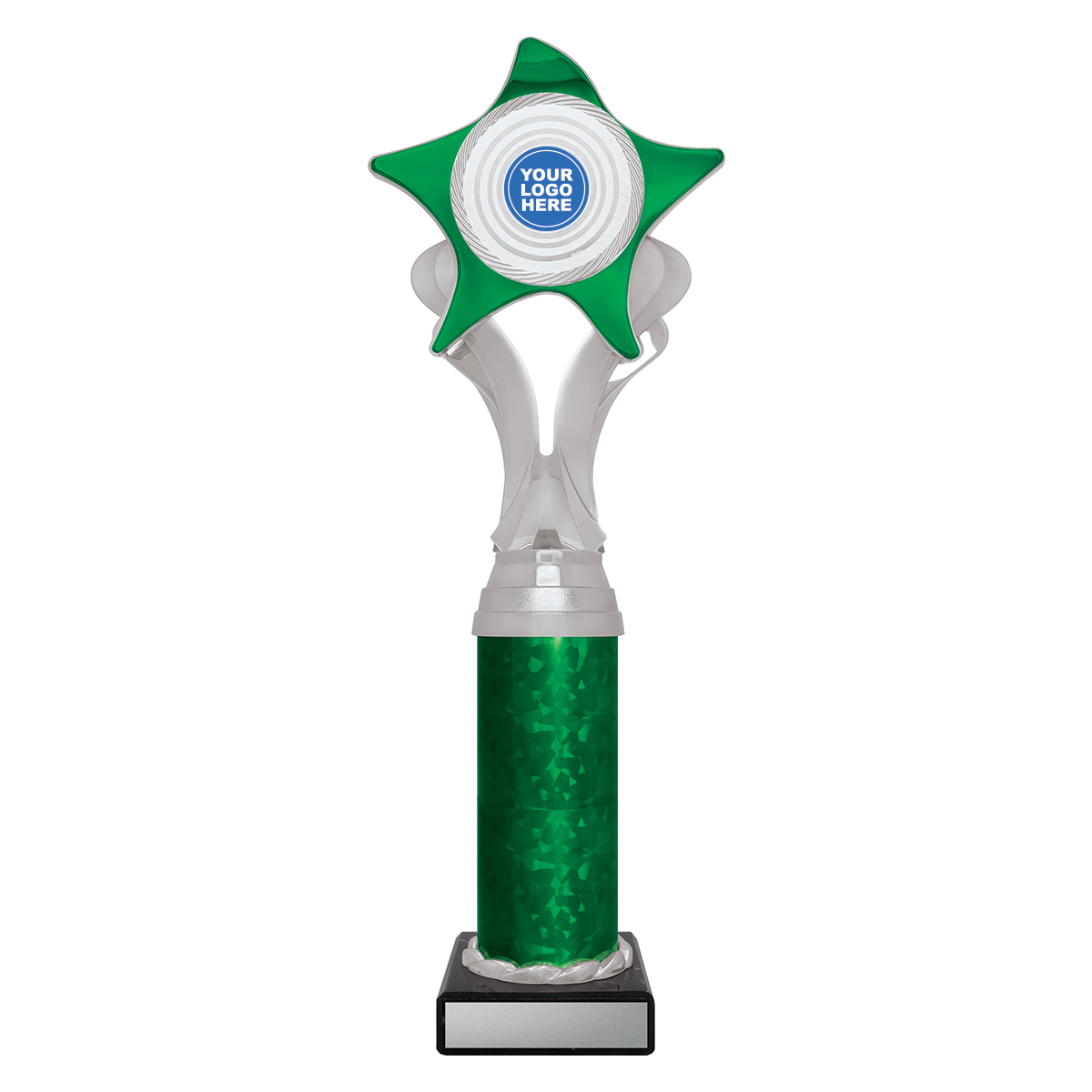Radiant Athena holder series of trophies perfectly shows off your custom logo over a number of sizes. Choose colour combination to best suit your awards.