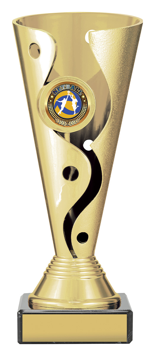 Carnival cups present a distinctive cup style trophy with attractive 3D design - on classic black marble base for your engraving - with brightly coloured insert for your sport. Trophies adaptable to your custom requirements.