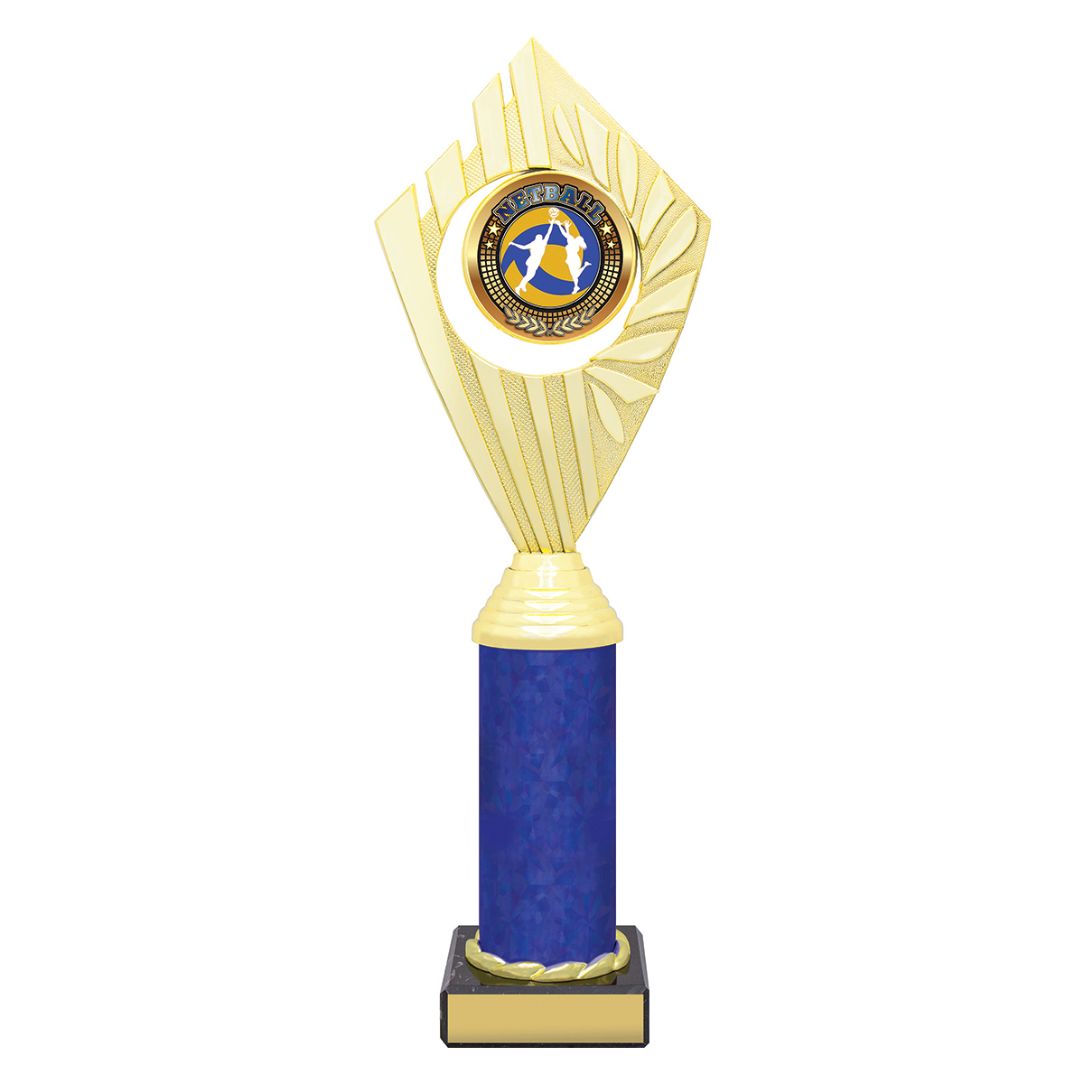 Flyer Series of trophies feature beautifully designed holders on columns of different colours - option to showcase 25 or 50mm logo or insert.