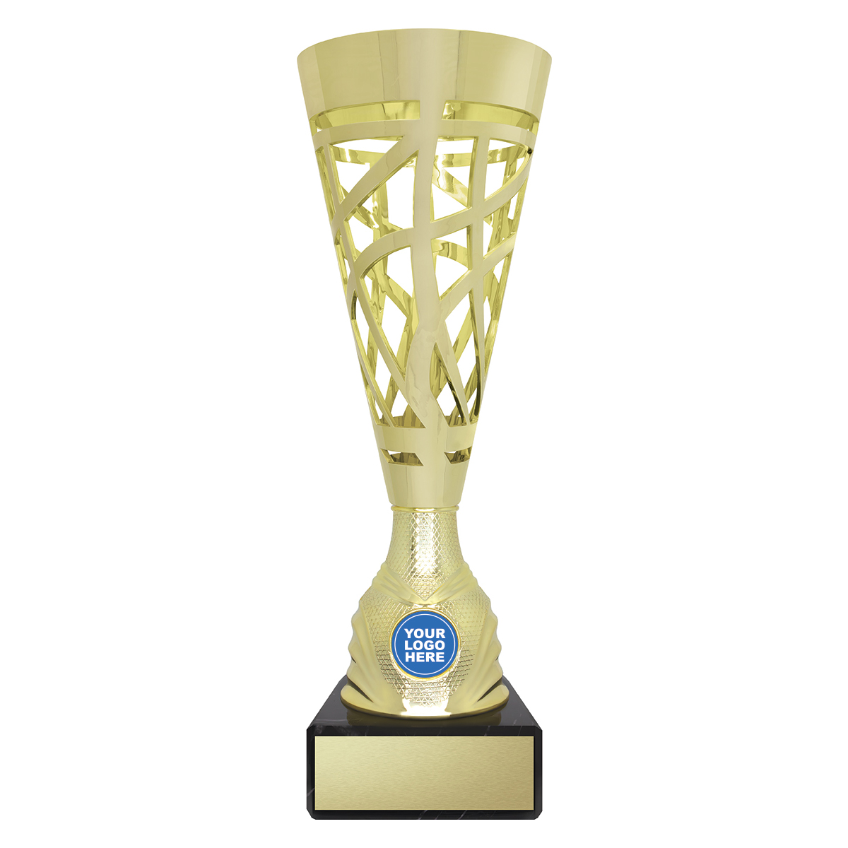 Super interesting design of trophy with swirling design plus great space for your custom insert. The Serafino trophies are available in gold or silver.