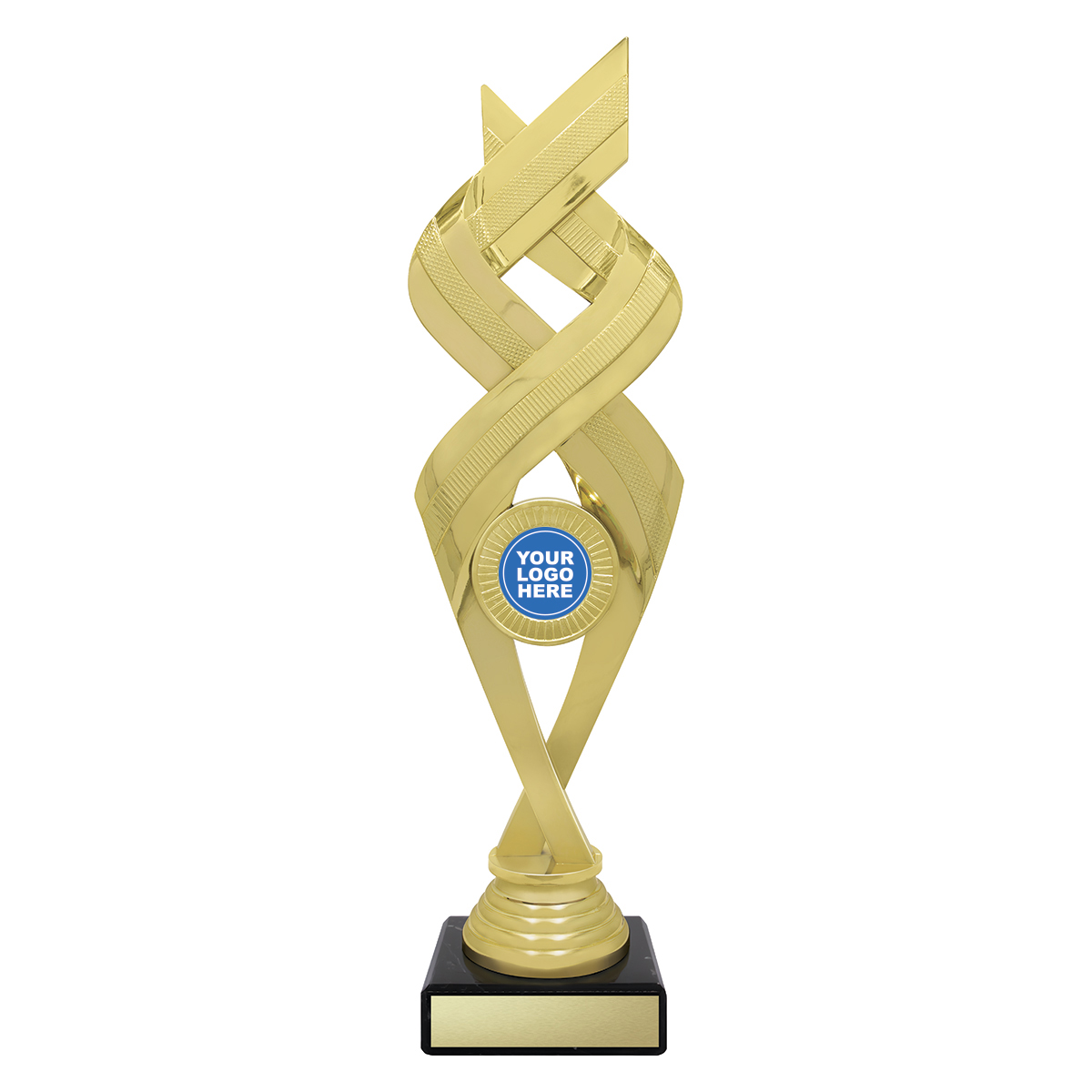 Stylish Jetstream series of holder trophies feature a complex design of intertwining elements and a central spot for your custom logo. Available in different colours.