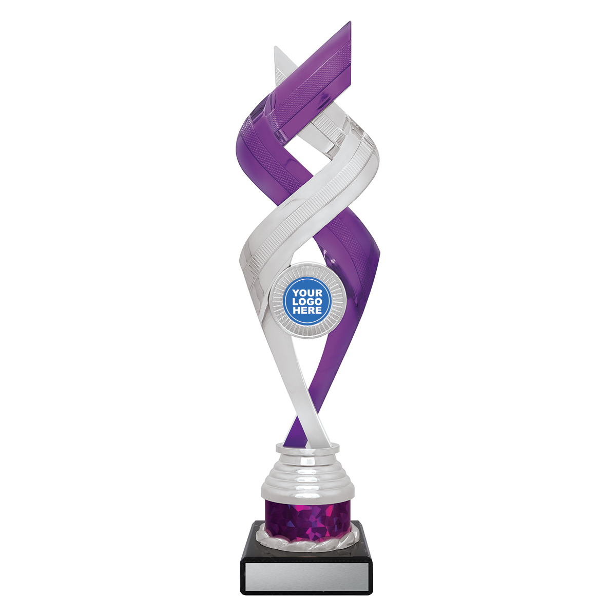 Stylish Jetstream series of holder trophies feature a complex design of intertwining elements and a central spot for your custom logo. Available in different colours.