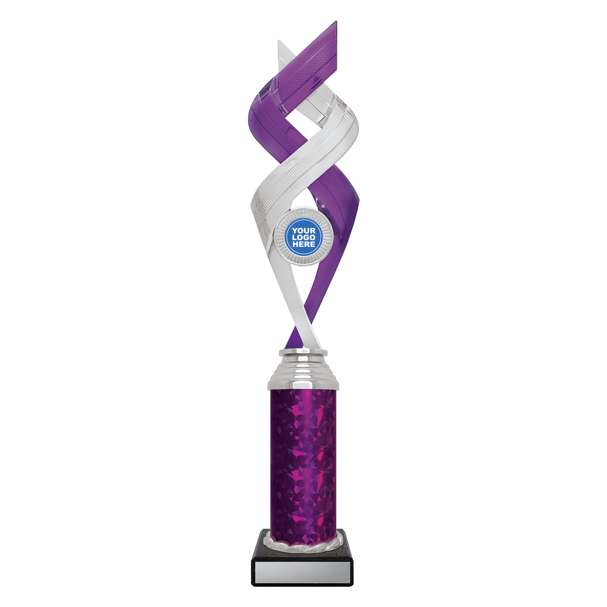 Stylish Jetstream series of holder trophies feature a complex design of intertwining elements and a central spot for your custom logo. Available in different colours.