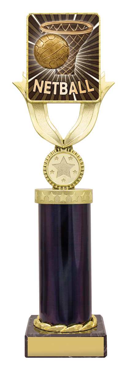 Brilliant netball trophies in the Lynx Bold range features gold trophy holder showcasing the insert for your sport or activity. Range of sizes available.