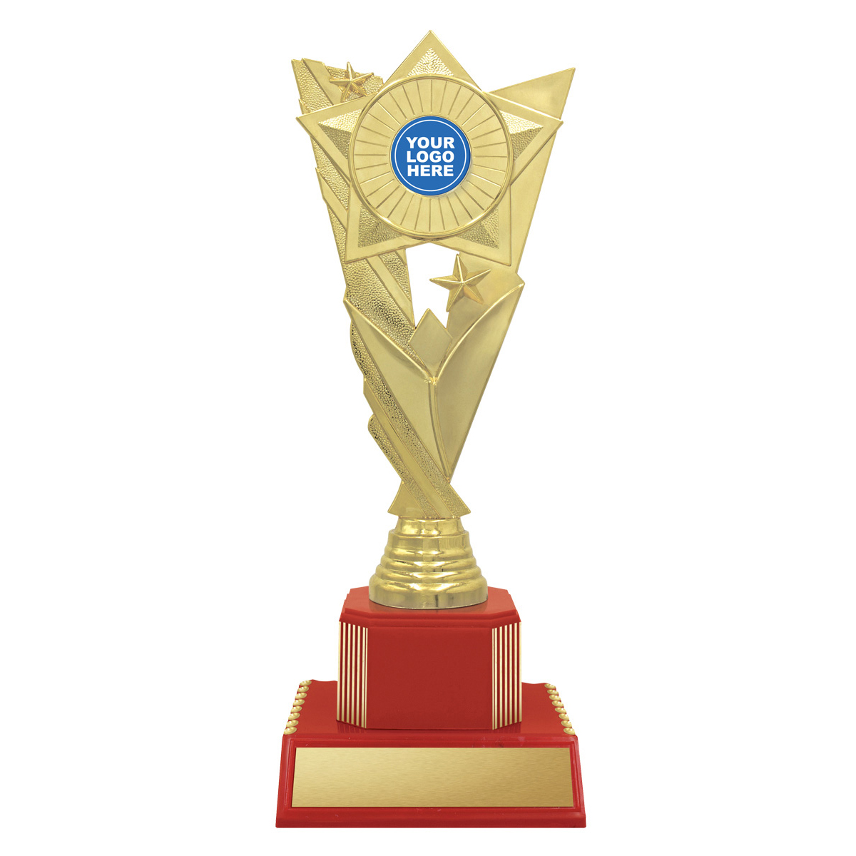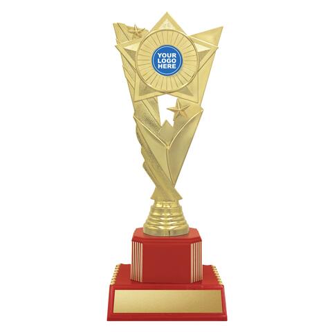 Star inspired holder on red bases to showcase your custom or club logo. You can change the colour of the base to suit your particular awards.