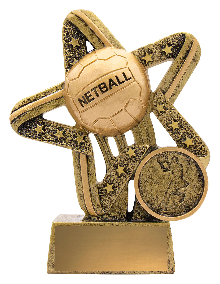 Stars & Stripes design offers an exciting alternative for your Netball trophy order. Netball trophies available in 3 sizes and finished in classic gold trophy colours.
