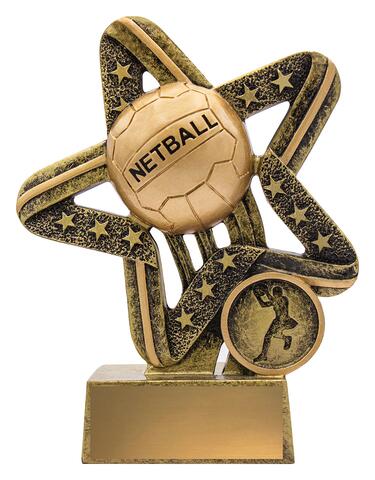 Stars & Stripes design offers an exciting alternative for your Netball trophy order. Netball trophies available in 3 sizes and finished in classic gold trophy colours.