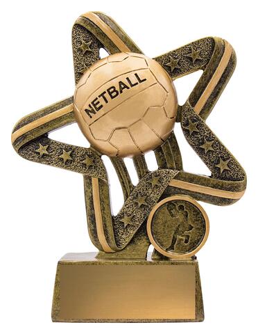 Stars & Stripes design offers an exciting alternative for your Netball trophy order. Netball trophies available in 3 sizes and finished in classic gold trophy colours.