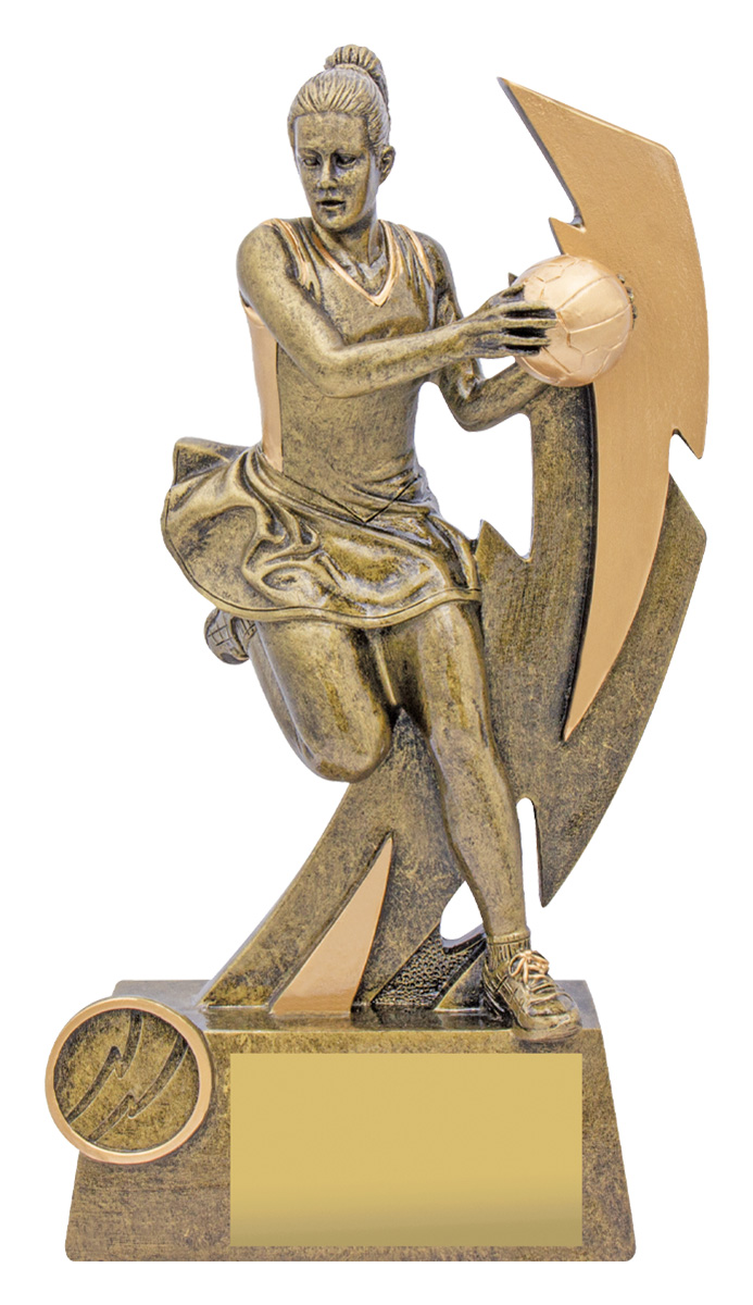 Netball Shazam Trophy Series showcases the netball player with excellent detail and is completed in classic trophy gold colours. With 5 sizes, series of netball trophies perfect for your club or team award presentation. Ideal for your best player awards.