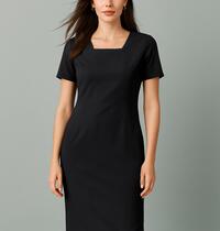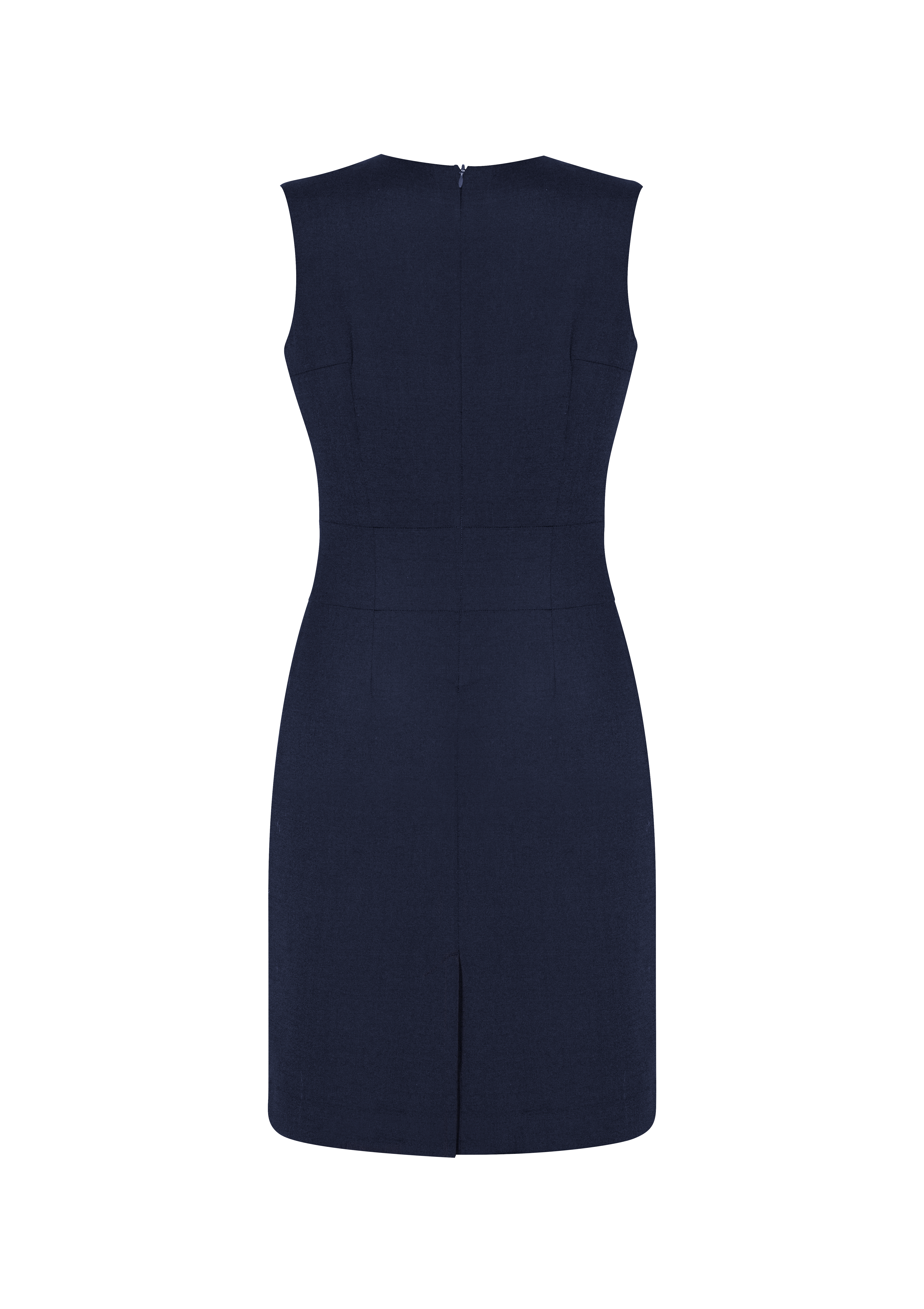 Elegant dress designed to be worn on its own or layered. With natural drape, full lining and a concealed back zip.