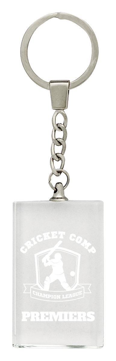 Crystal keychain award with substantial engraving space. A more premium option to a budget keychain or traditional medal.