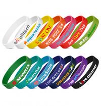 Wrist bands which are manufactured from a special silicone that glows in the dark. They are ideal for night clubs, beach parties, concerts and any night time event. The wrist bands can be branded with the choice of screen printing, debossing or embossing and one size fits most. They can be supplied in an optional polybag with or without a full colour label. A production lead time of 20 working days applies to this product by air freight and larger orders can be sea freighted on request to reduce the freight cost.