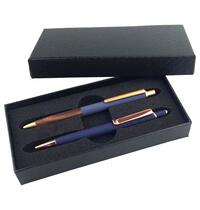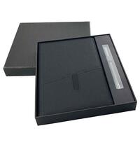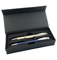 Crafted with excellence since 1968, the ERGA Italian-made copper retractable ballpoint pen features a matte finish and is compatible with high-quality Parker German black ink refills. With a tungsten carbide ball, the ink lasts up to 4000 meters, ensuring smooth and long-lasting writing. Available in four elegant color options, this prestige gift set is beautifully presented in a sleek black cardboard gift box, making it the perfect choice for high-end corporate gifting.