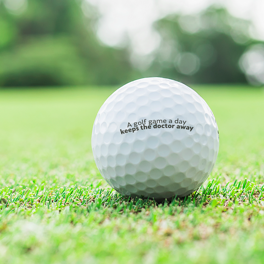 Playing any kind of sport is linked to having a good and fun time. So, putting something humorous on golf balls is not a bad idea. You can put a short, golf-related joke on the balls, or just add an inner circle joke, that only you and your pals will understand. Either way, you should remember that golfing is a pleasant activity and should be treated as such.