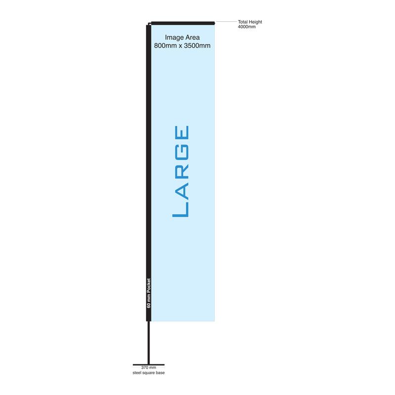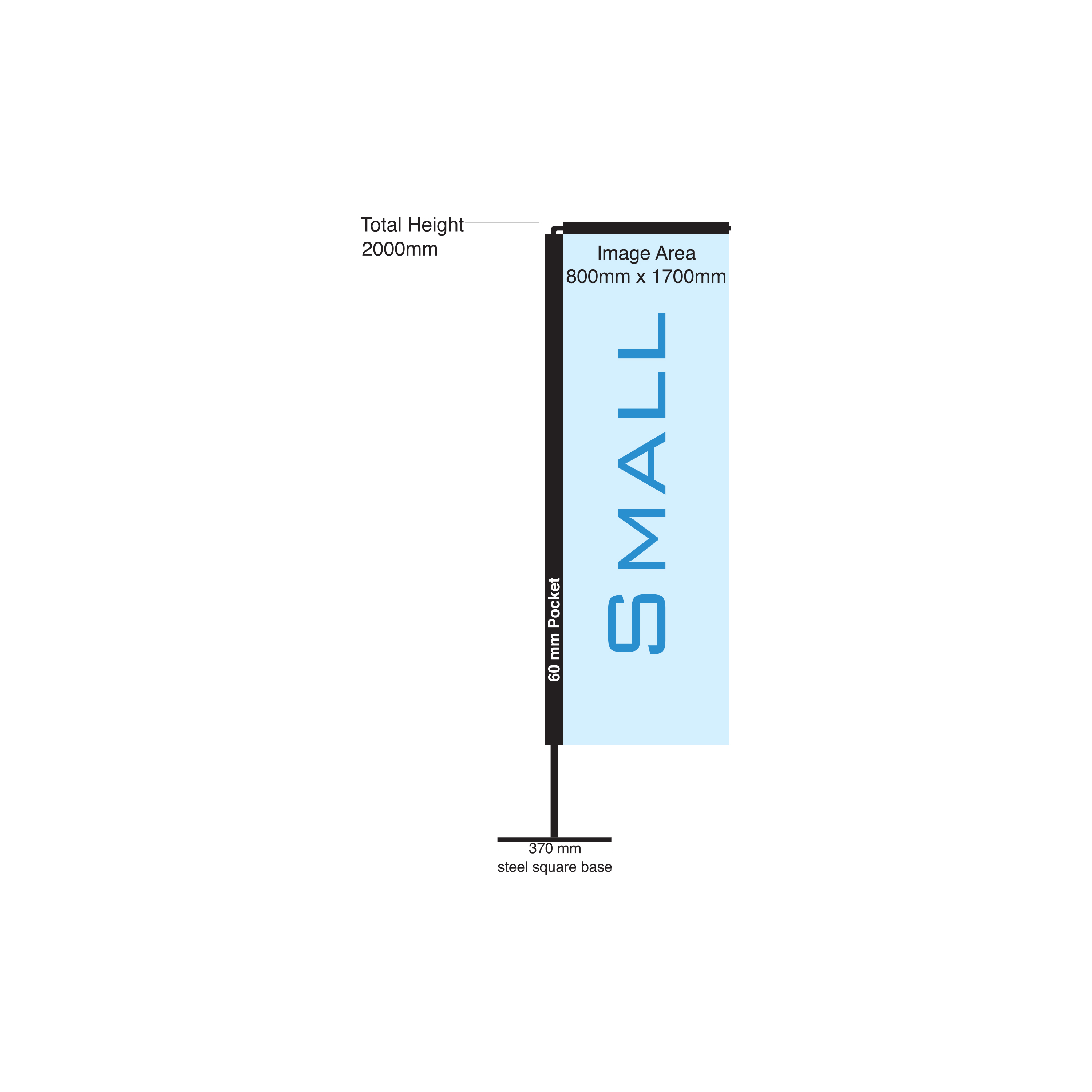 The rectangular flag print is attached to detachable lightweight poles which comes in 3 different size’s. We also offer a range of bases to suite your requirements.