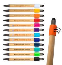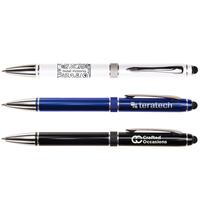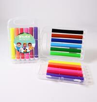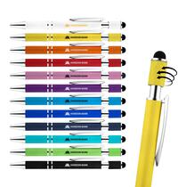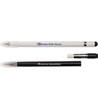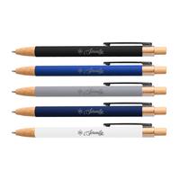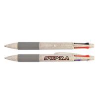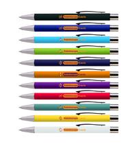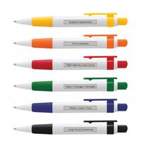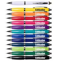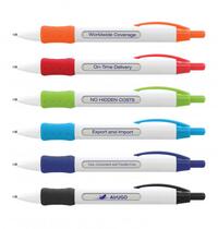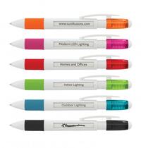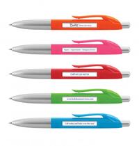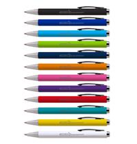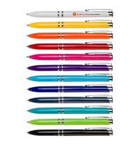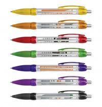 Retractable plastic ball pen with eight different coloured refills. It has yellow, orange, pink, red, green, blue, purple and black refills which have 500 metres of writing ink.